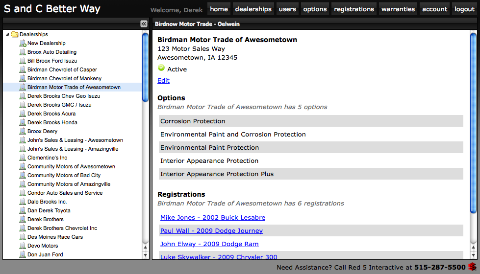 I built a web application to allow S & C to manage these protections and offer them to dealerships. The dealerships had their own accounts and could log in and select each protection that they sell. Then, S & C could view, process, ship, and bill for these registrations.