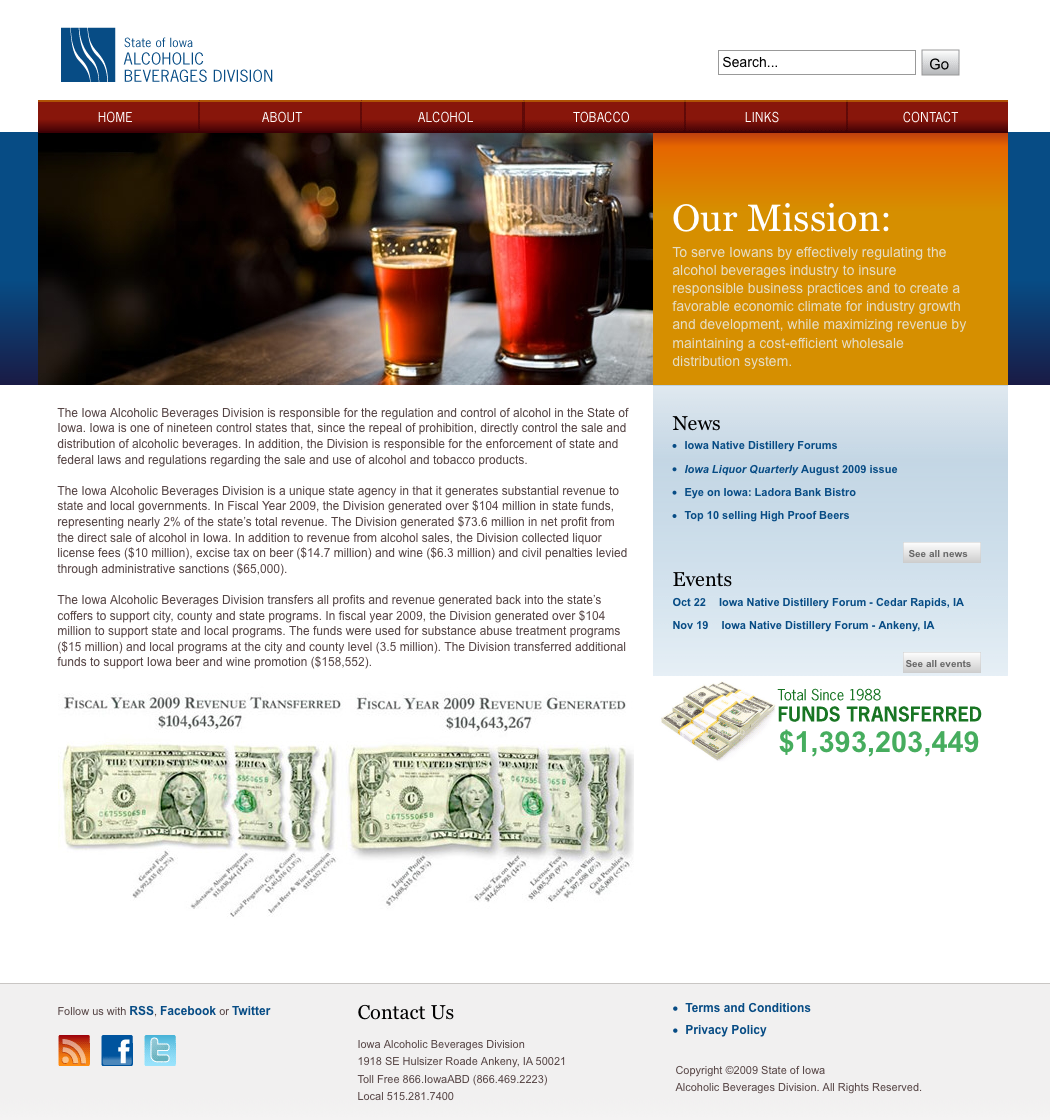 Iowa Alcoholic Beverages Division is responsible for the regulation and control of all alcohol and tobacco in the state of Iowa.  The division has generated hundreds of millions of dollars for the state of Iowa.